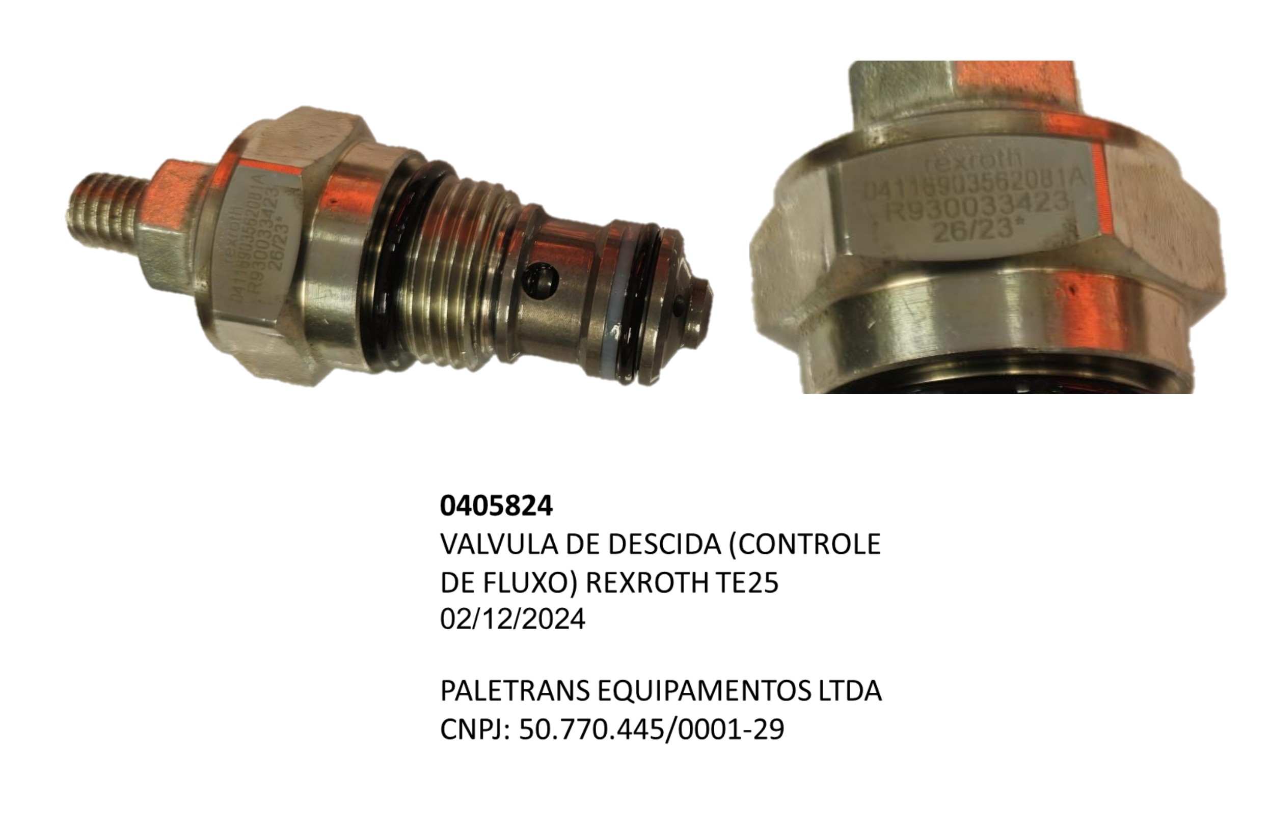 VALVULA DE DESCIDA (CONTROLE DE FLUXO) REXROTH TE25 - Código 0405824